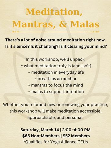 Whether you’re brand new or refining your practice, this workshop will give you practical tools to make meditation accessible, approachable, and personal.