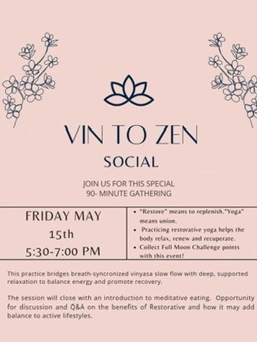 Session closes with wine and light refreshments and Q&A on how Yin may add balance to active lifestyles.